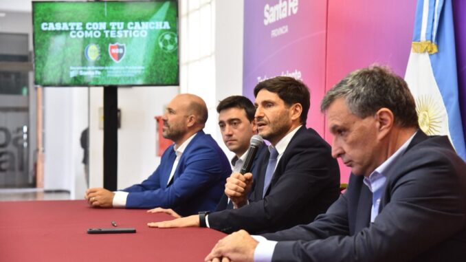 Pullaro encabezó la presentación de “Casate con tu ciudad como testigo” en los clubes sociales y deportivos de la provincia. Este martes en Rosario se firmaron convenios con Rosario Central y Newell’s Old Boys, y se hará lo propio con Unión y Colón.