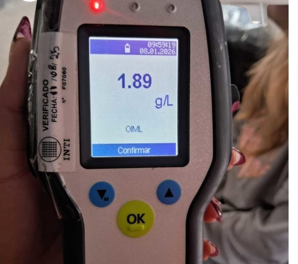 Tras el impacto, se le realizó el test de alcoholemia correspondiente, que arrojó un resultado de 1,89 gramos de alcohol por litro de sangre. En la provincia de Buenos Aires rige la ley de Alcohol Cero al Volante, que no admite ningún nivel de tolerancia para conductores particulares.