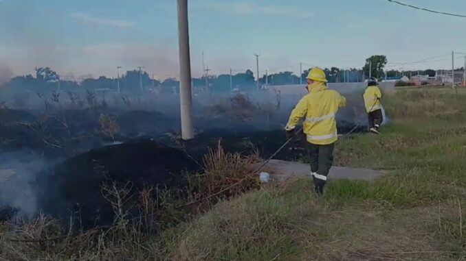 Bomberos Zapadores de San Lorenzo intervinieron este sábado 31 de enero por la tarde para controlar un incendio de pastizales que se desató en un terreno baldío ubicado en la intersección de bulevar Oroño y calle Vega, en la ciudad de San Lorenzo.
