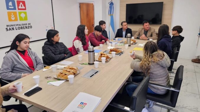 Este lunes en la Sala de Prensa municipal, el intendente Leonardo Raimundo y el secretario de Coordinación General, Alejandro Cabral, recibieron a alumnos de los colegios San Carlos y Cristiano Redentor que realizarán pasantías en la Municipalidad de San Lorenzo. La actividad forma parte de un programa de formación y orientación laboral a cargo de la administración pública local.
