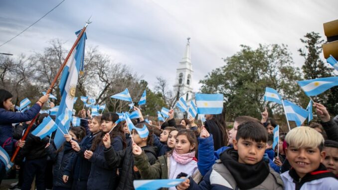 La ceremonia fue encabezada por el intendente Leonardo Raimundo, que tomó la promesa a los chicos de 4º grado de las escuelas primarias de la ciudad. Además se realizó un abrazo patriótico al espacio histórico con una bandera de más de 400 metros de extensión.