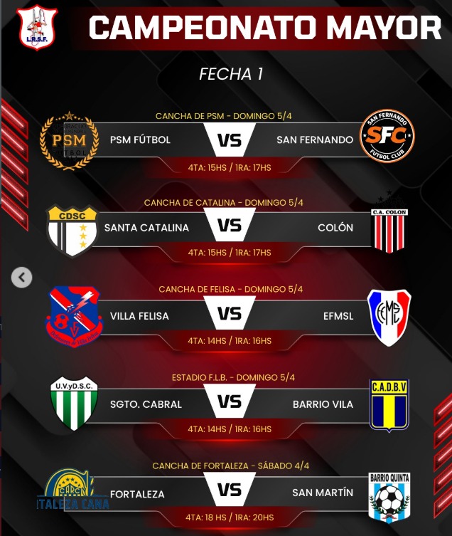 Entre los cruces destacados aparecen duelos atractivos en diferentes canchas, con horarios distribuidos para que el público pueda acompañar a sus equipos en este arranque.