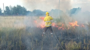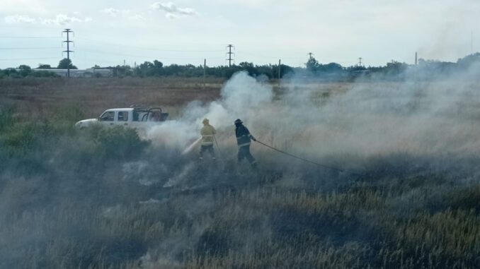 Personal de Bomberos Zapadores intervino este martes por la tarde en un incendio de pastizales registrado en un terreno baldío ubicado en la intersección de las calles Falucho y Vega, en la ciudad de San Lorenzo.