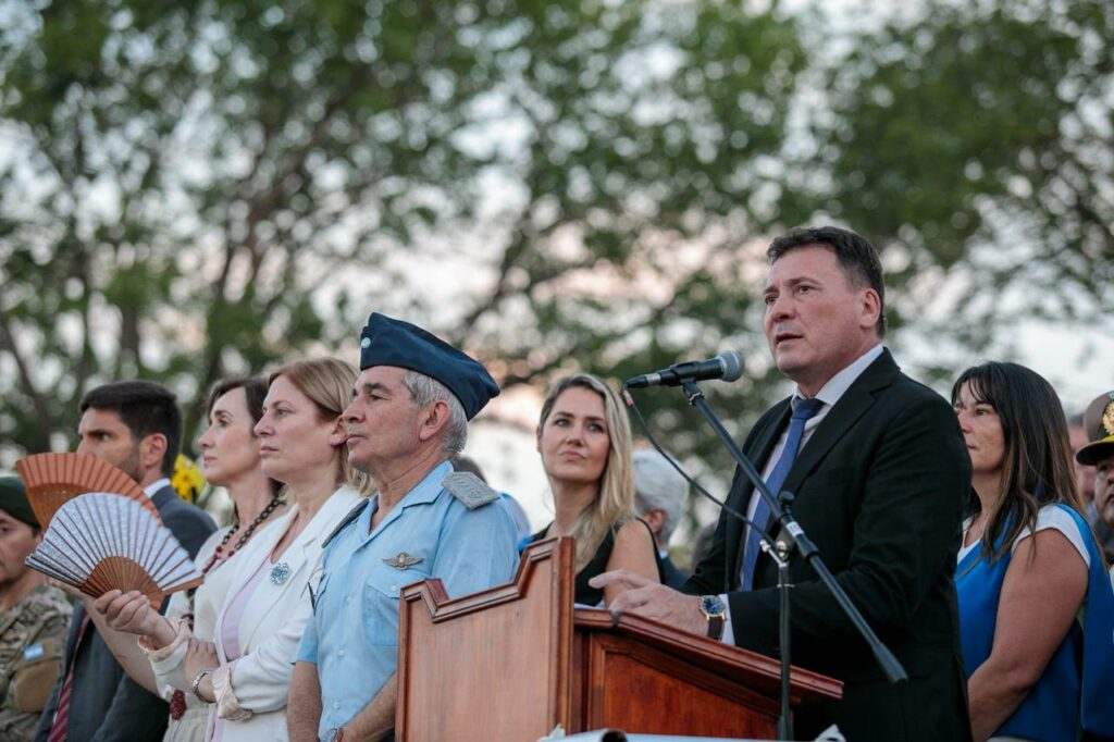 El intendente Leonardo Raimundo abrió su alocución con un reconocimiento a los héroes de Malvinas y luego expresó: “Hace 211 años nuestro Padre de la Patria y 150 bravos granaderos en este Campo de la Gloria ofrendaron su sangre para iniciar la gesta emancipadora con el fin de lograr un país y un continente consagrados al principio de que todas las personas son iguales y tienen los mismos derechos para vivir en libertad”.
