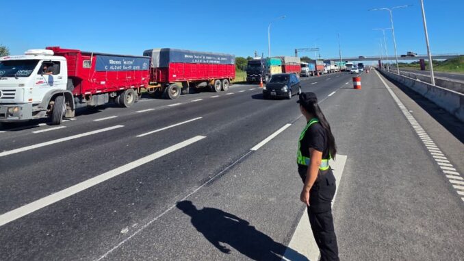 En algunos sectores, incluso se registran camiones detenidos sobre la banquina, lo que complica aún más la fluidez del tránsito.