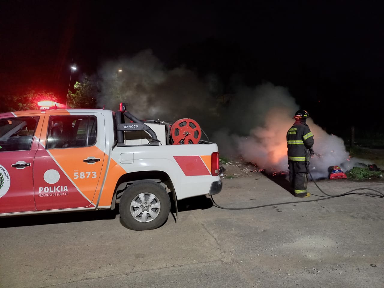Varios jóvenes prendieron fuego un contenedor ubicado en Av San Martín y Falucho de la localidad de San Lorenzo y se retiraron por Av San Martín hacia el norte.