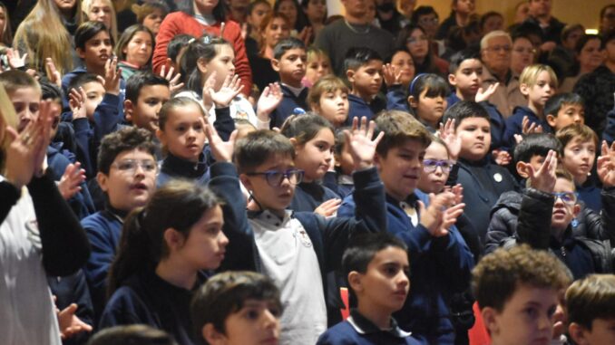 El Intendente Municipal, Carlos De Grandis, tomó la promesa de lealtad a la Bandera Nacional a alumnas y alumnos todos los 4° grado de las escuelas de la ciudad, en el marco de un emotivo acto realizado esta tarde en el Teatro Municipal del Centro Cultural Municipal “Batalla Punta Quebracho”, organizado por la Municipalidad de Puerto General San Martín, a través de la Secretaría de Cultura y Educación Municipal, y la Escuela N° 1398 “Juana Manzo”.