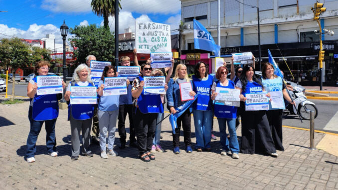 La manifestación se desarrolló este mediodía en la esquina de avenida San Martín y avenida del Combate, en el marco de una jornada provincial impulsada por AMSAFE para visibilizar los reclamos del sector.