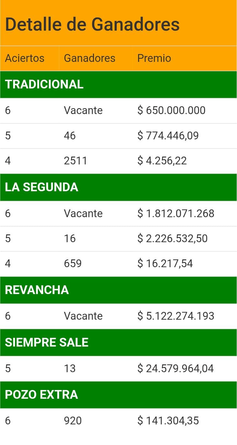 En la modalidad Tradicional, el pozo de $650.000.000 no tuvo ganadores.