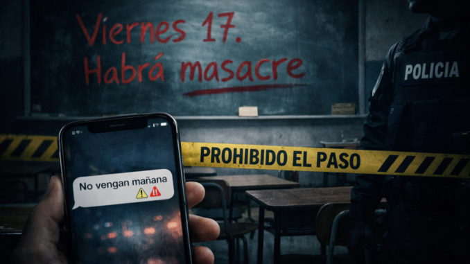 El periodista Santiago Ríos, en su segmento “El Mirador Sanlorencino”, explicó que las intimidaciones aparecieron en al menos seis o siete escuelas de la región. En muchos casos, los mensajes advertían sobre supuestos ataques que se concretarían un día específico, lo que derivó en temor dentro de la comunidad educativa.