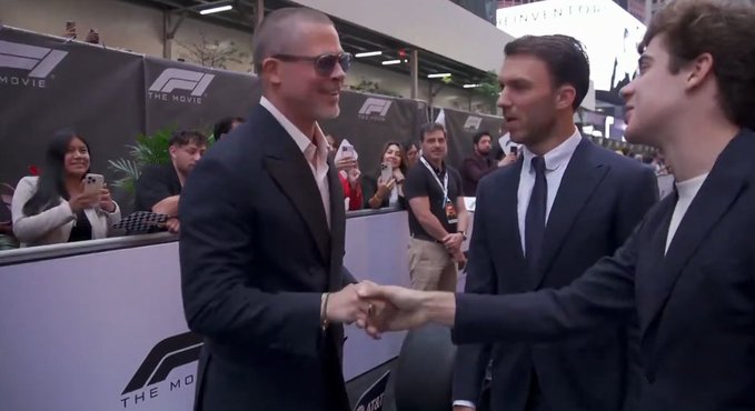 Colapinto asistió acompañado por el equipo Alpine, junto al también piloto Pierre Gasly. Ambos se acercaron a Pitt, quien los saludó con entusiasmo y se tomó fotos con ellos para la prensa y los fanáticos.