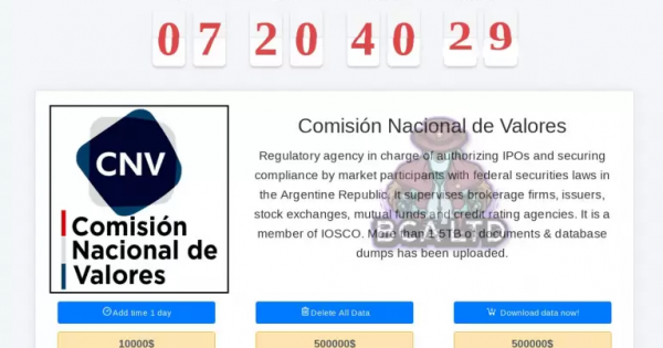 La Comisión Nacional de Valores(CNV) fue hackeada por ciberdelicuentes. Piden u$s 500.000 para no liberar la información.