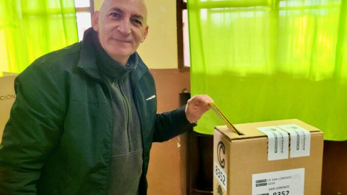 Este domingo electoral en San Lorenzo arrancó con temperaturas bajas, pero con el compromiso cívico en alto. El concejal y candidato Gustavo Oggero emitió su voto en la Escuela N.º 477 Combate de San Lorenzo y compartió sus sensaciones en una jornada que, pese al frío, se desarrollaba con tranquilidad.