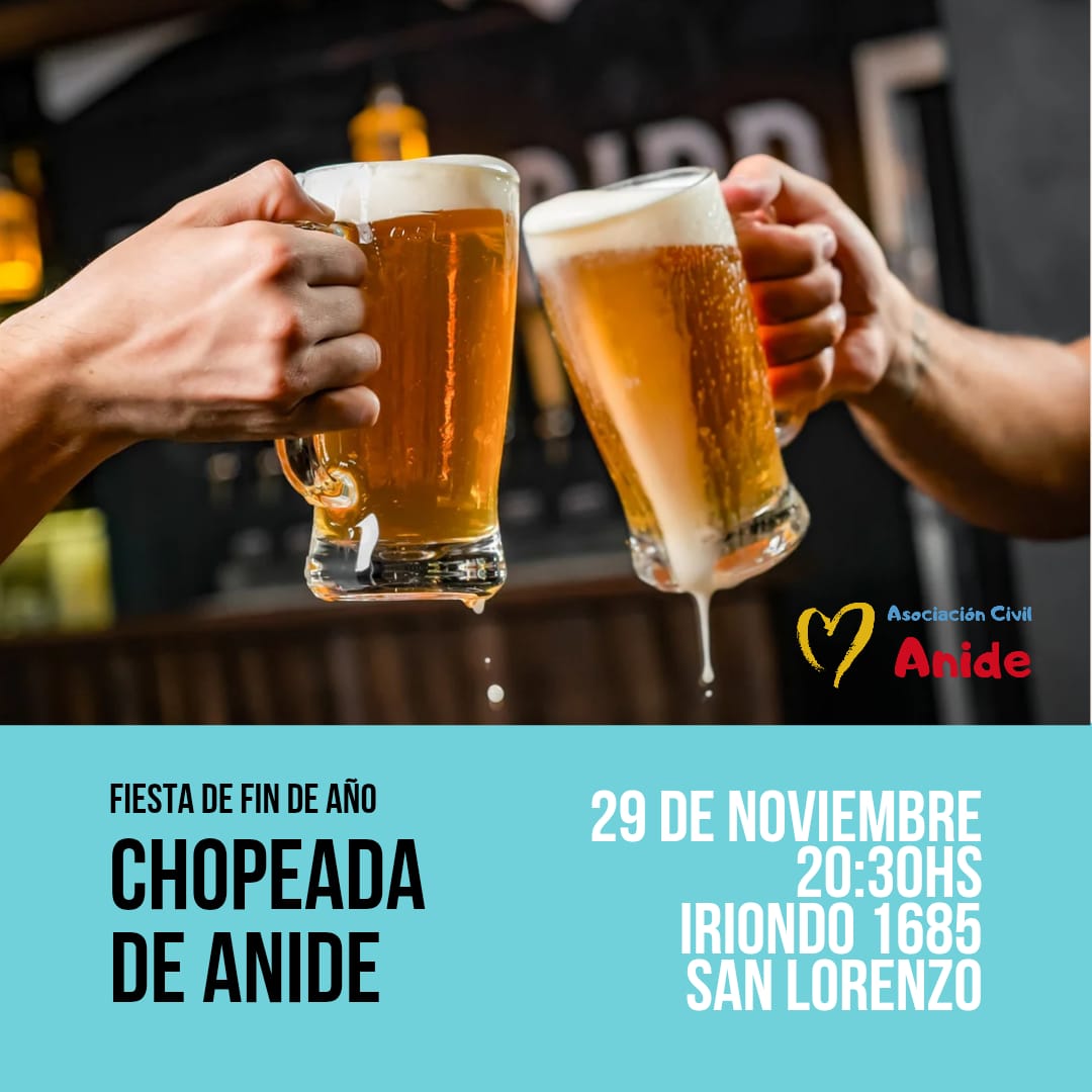 La esperada chopeada del sábado 29 se realizará en el predio de Anide, ubicado en Bv. Moreno 1685, desde las 20:30. Habrá estacionamiento, música, shows en vivo, sorteos y una propuesta gastronómica completa por un valor de $20.000, que incluye entrada, pizzas, choripanes, bebidas sin alcohol y postre. La tarjeta puede conseguirse a través de colaboradores o por Instagram. Además, se pide a los asistentes llevar su propio vaso como gesto ecoamigable.