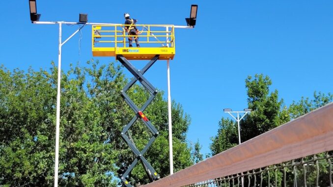 También se están instalando luces del mismo tipo en el perímetro de las canchas y en la zona de vestuarios, como parte de una obra integral que incluyó el replanteo del tablero principal y la reparación metálica de las columnas.