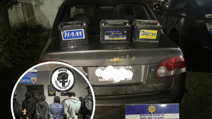 En su poder se encontraron tres baterías de auto: una marca Herbo, una Spadoni y una Ham. Los detenidos, junto al material secuestrado, fueron trasladados a la sede policial.