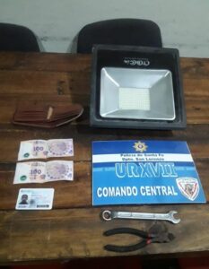 Siendo 04:45 horas personal de comando se encontraba haciendo su recorrido habitual, cuando al llegar a Av. San Martín 2042 de la localidad de San Lorenzo, observa a un muchacho trepado en el cartel publicitario del local ubicado en ése lugar, sustrayendo un reflector. Rápidamente los aprehendieron en el lugar.