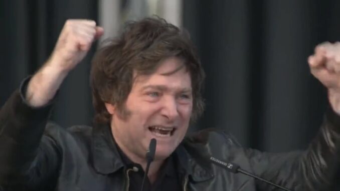 El diputado libertario, Javier Milei, se muestra cada vez más cerca de la Ultraderecha Internacional. En la última semana se mostró con una gorra Trumpista y dio un discurso en el evento de VOX en España. Trump, Meloni, Milei y otros líderes de la derecha mundial hablaron en el evento.