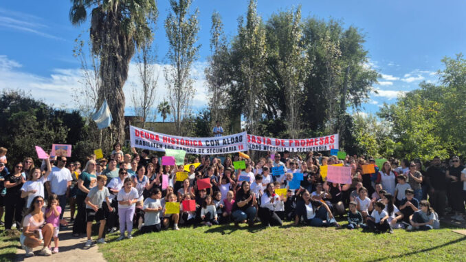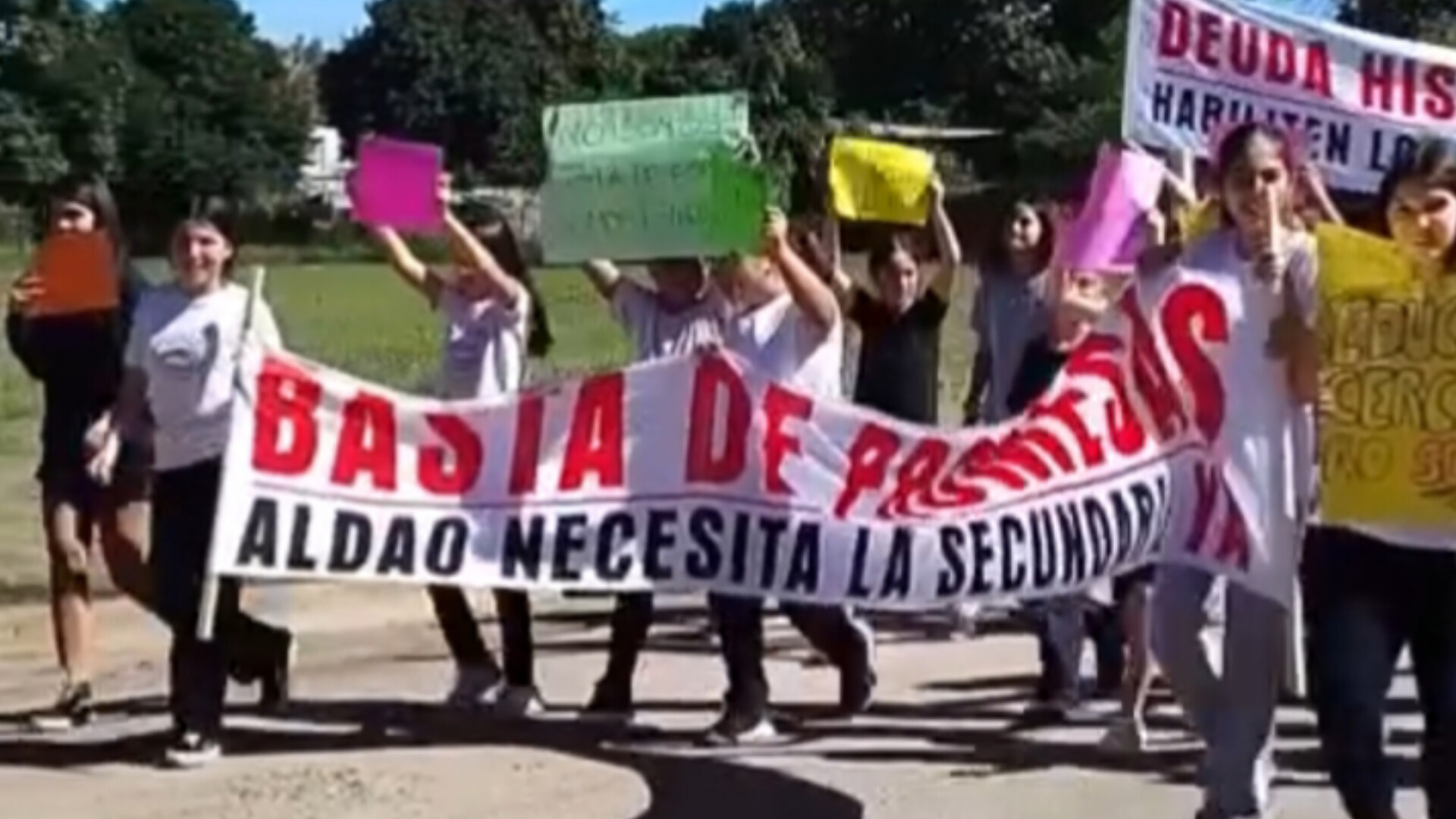 Tal como se venía informando en FM 102.9 Nueva Estrella, este mediodía se llevó a cabo una movilización en la localidad de Aldao para reclamar la creación de una escuela secundaria.
