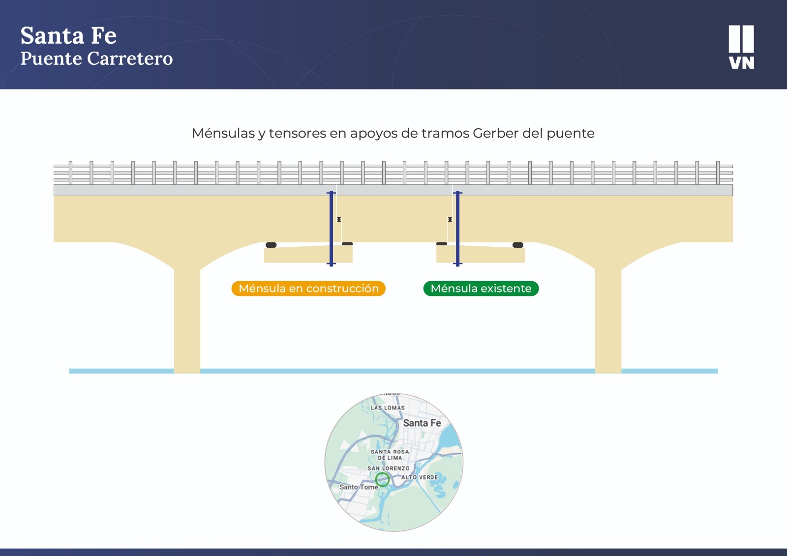 Por otro lado, la restricción para vehículos de mayor porte se sostendrá hasta las 6 horas del jueves 5 de septiembre. El cierre es necesario para permitir el adecuado fraguado de las seis ménsulas suplementarias ubicadas en dos apoyos en la zona del arco del Vado. Estos dispositivos tienen sus armaduras y encofrados colgados de la estructura del viaducto, junto con sus tensores de sujeción, por esta razón se requiere un período de fraguado sin las vibraciones del paso de vehículos.