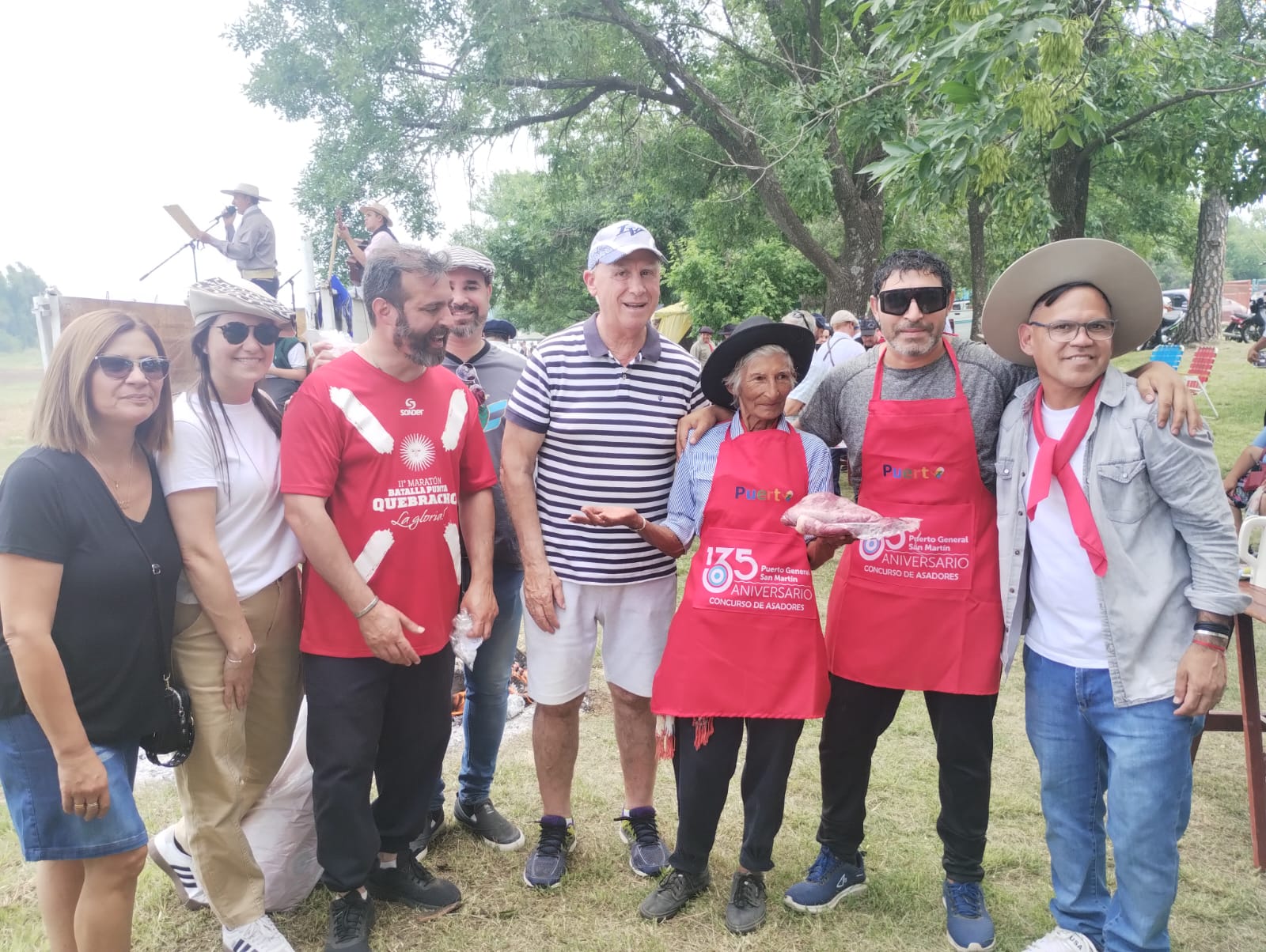 El Intendente Municipal, Carlos De Grandis , el presidente del Concejo Municipal, Juan Manuel De Grandis, acompañado por los concejales Maximiliano De Grandis, Sonia Grassano y Joana Passoni, y los secretarios de Educación y Cultura, Sebastián Lezcano, de Gobierno, Vanina Matassa, de Desarrollo Social, Fernando Torrens, los directores de Deportes, Gustavo Rojas, del Catalina Salomón, Walter García, del Museo del Río Paraná, Jonatan Brest, entregaron un delantal del 135 aniversario y un matambre a cada asador.