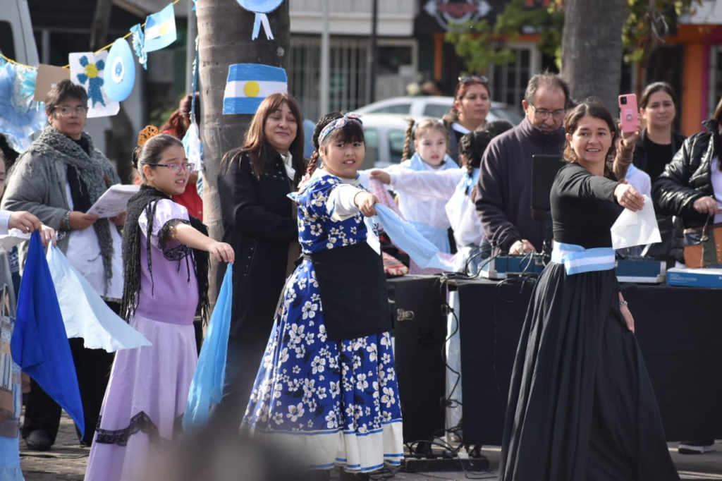 la Revolución de Mayo, con un marco de alegría y emoción con la presencia de alumnos, directivos, y vecinos que vistieron de celeste y blanco a la Plaza San Martín.