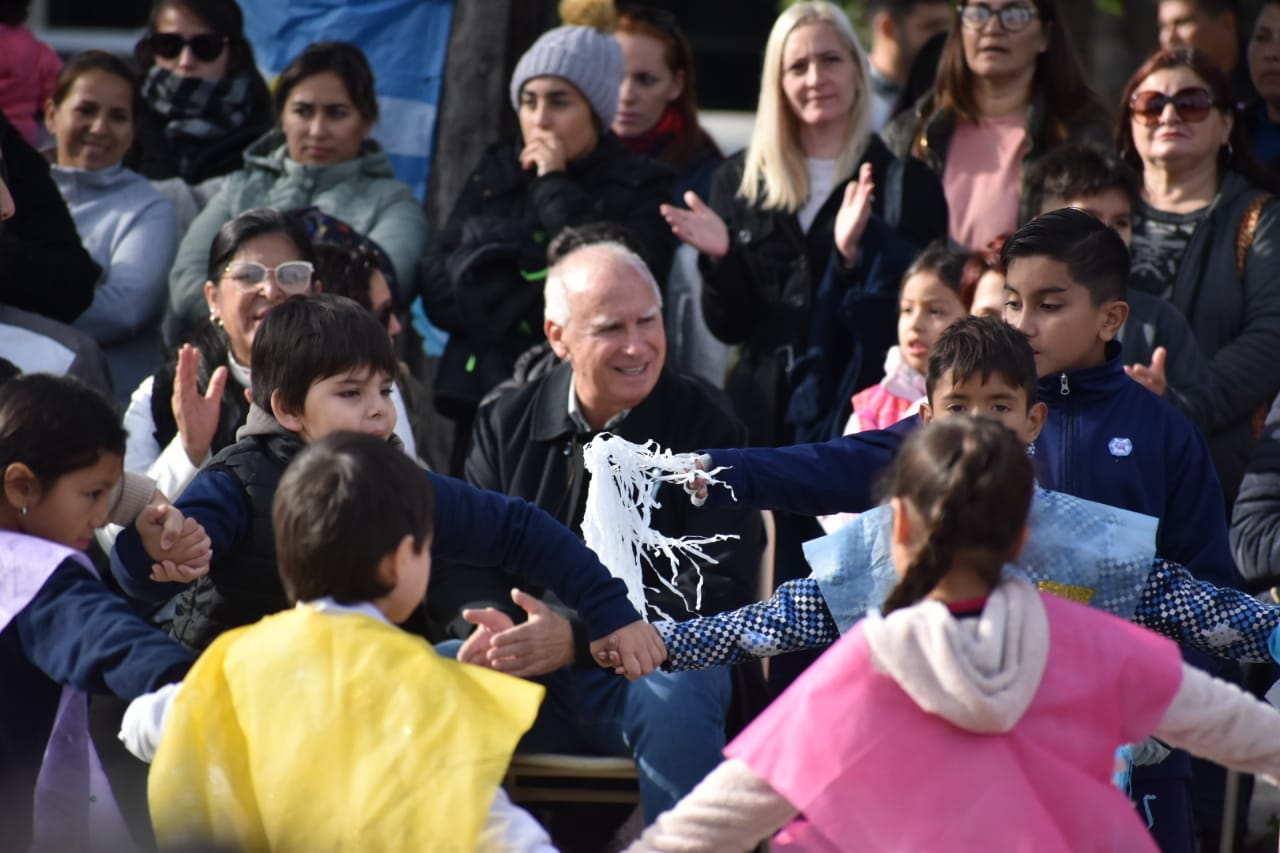 El Intendente Municipal, Carlos De Grandis, destacó y agradeció a las familias, a los alumnos, pero en especial a las profesoras y directivos del establecimiento educativo, por la organización del acto. “Han hecho un trabajo enorme para vestir esta plaza de celeste y blanco. Se ve el trabajo de las profesoras y los niños que nos da orgullo, ese es el sentimiento que debemos tener”, indicó.