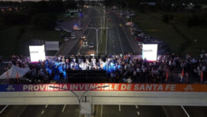 El gobernador de Santa Fe, Maximiliano Pullaro, inauguró este lunes el tercer carril de la autopista Rosario–Santa Fe, en un acto realizado sobre el puente del kilómetro 0, en el ingreso a la ciudad de Rosario.