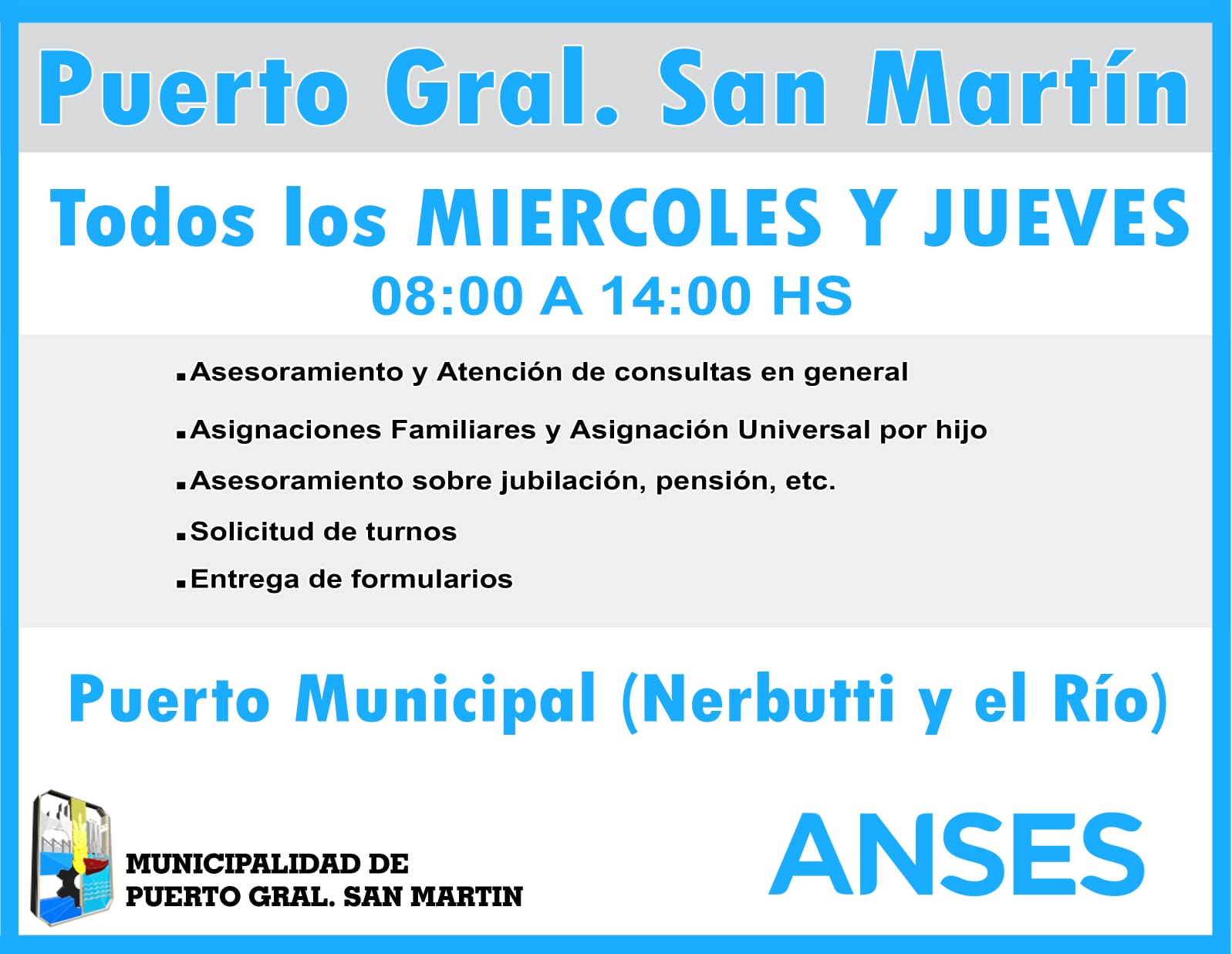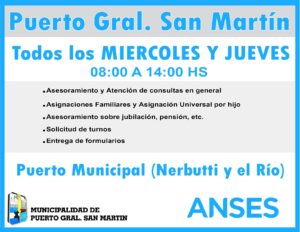 La apertura nuevamente de la oficina, que se encuentran en un óptimo estado para prestar eficientemente el servicio, a partir del mantenimiento en general y gastos de funcionamiento que aporta la propia Municipalidad de Puerto desde sus inicios, permitirá realizar asesoramiento y atención de consultas en general, tramitar Asignaciones Familiares y Asignación Universal por Hijo, consultar asesoramiento por jubilaciones y pensiones, entrega de formularios, y realizar las solicitudes para los turnos.