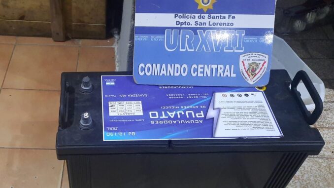 En el lugar también se halló la batería sustraída, de color negro y con la inscripción «Acumuladores Pujato». Tanto los detenidos como la víctima fueron trasladados a la sede de la Comisaría 1era. para continuar con las diligencias correspondientes.