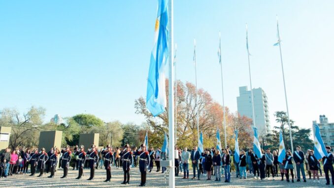 Este martes se efectuó un izamiento en el Campo de la Gloria, encabezado por el intendente Raimundo en compañía del presidente del Concejo, Hernán Ore. Además se colocaron ofrendas florales en el busto de Manuel Belgrano y en la tumba de María Catalina Echevarría de Vidal, la mujer que confeccionó la primera enseña patria.