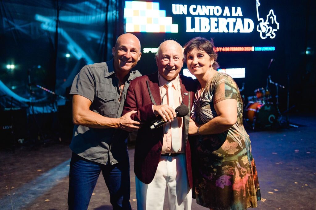 La Municipalidad de San Lorenzo efectuó un reconocimiento a la trayectoria de Mariano “Nito” Palacios, histórico conductor del festival folclórico “San Lorenzo, un canto a la libertad”. Este domingo por la noche, el intendente Leonardo Raimundo entregó al referente local del folclore una copia del decreto Nº 083, que formalizó la distinción. Lo hizo acompañado por el subsecretario de Defensa del Consumidor y DDHH, Fernando Dagatti; y la subsecretaria de Desarrollo Local, Producción, Empleo y Turismo, Delfina Cavagnero.