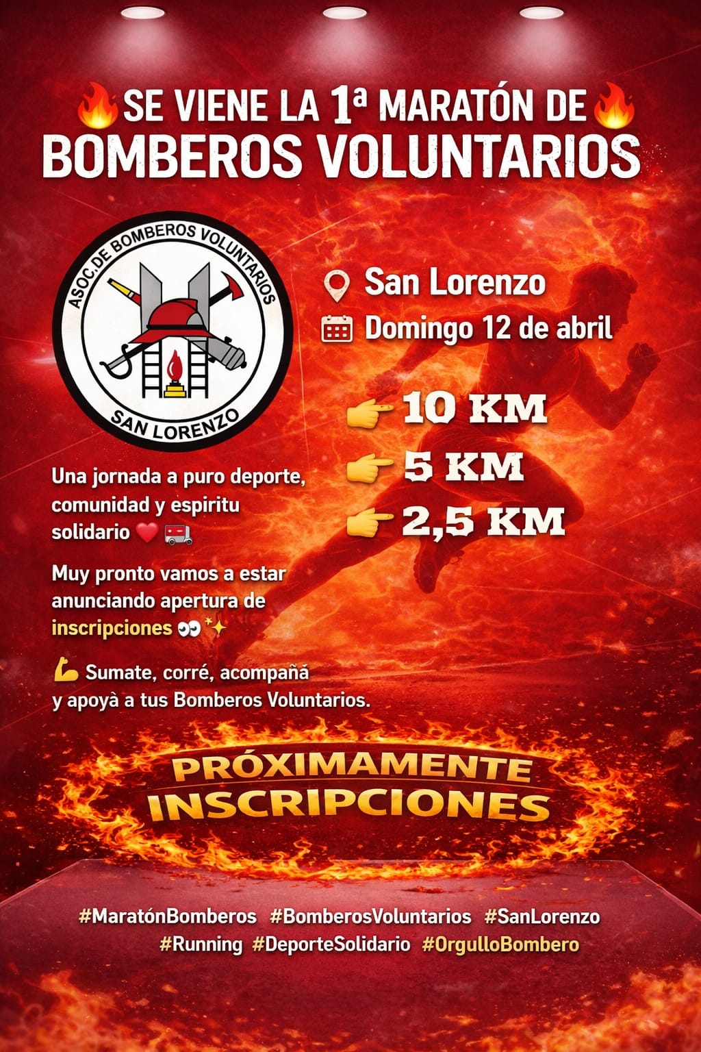 San Lorenzo vivirá una jornada especial de deporte, encuentro y solidaridad con la realización de la 1ª Maratón de Bomberos Voluntarios, que tendrá lugar el domingo 12 de abril en la ciudad.