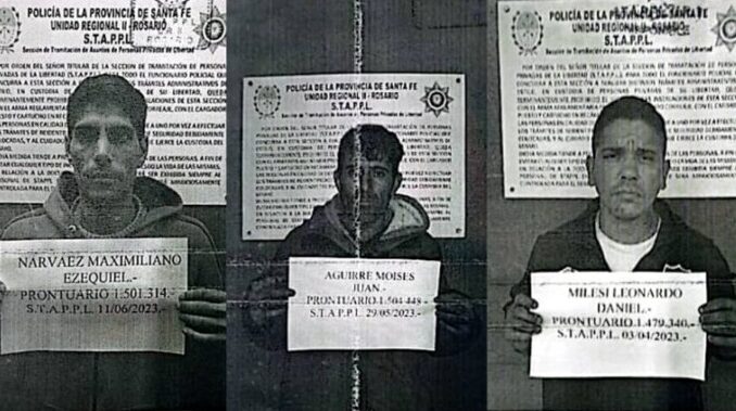 Poco después, la policía logró apresar a uno de ellos, identificado como Moisés Juan Aguirre, mientras que anoche fueron recapturados Leonardo Daniel Milesi y Maximiliano Narváez, detallaron las fuentes.