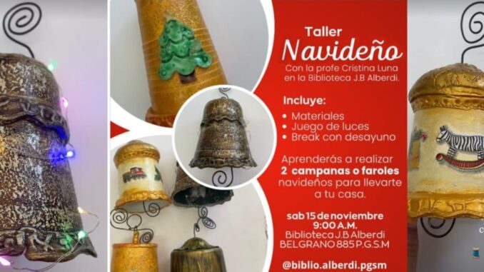 El sábado 15 de noviembre, la Biblioteca Juan Bautista Alberdi de Puerto General San Martín ofrecerá un taller para crear campanas y faroles navideños.
