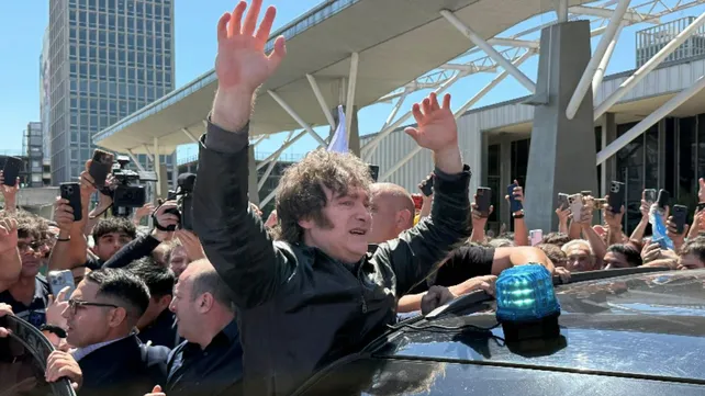 Milei incluso salió al balcón del segundo piso para saludar a sus seguidores, mientras la seguridad mantenía un fuerte control del perímetro.