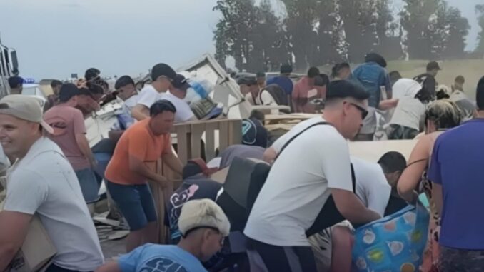 Este fin de semana, la localidad bonaerense de Pergamino, ubicada a 110 kilómetros de Rosario, fue escenario de una tragedia vial que rápidamente se vio empañada por un hecho de saqueo. Un camión que volcó en la ruta nacional 8, a la altura del kilómetro 205, desató una serie de incidentes que incluyeron el robo de su carga. Sin embargo, lo más impactante de la situación fue que los vecinos comenzaron a llevarse los productos del camión antes incluso de que se retirara el cuerpo sin vida del conductor.