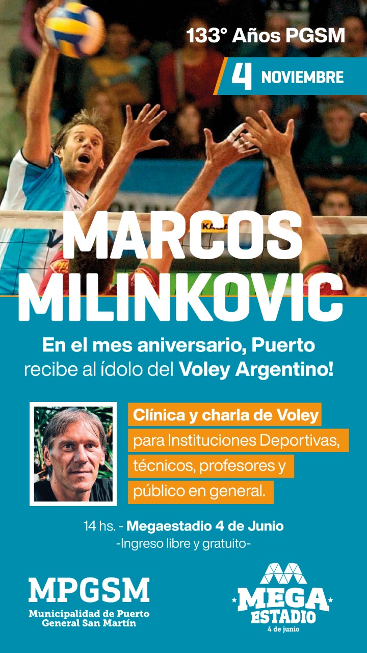 En el marco del aniversario 133 de Puerto, Milinkovic participará de esta jornada que se desarrollará en el Estadio «4 de Junio». La entrada será libre y gratuita, para Instituciones Deportivas, técnicos, profesores, jugadores y público en general.