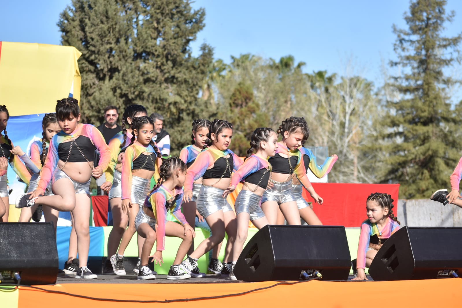 Sobre el escenario montado, fueron subiendo las distintas expresiones artísticas de la tarde, con alumnos de distintas edades de las escuelas de danzas urbanas, árabes, folklóricas del Centro Cultural Municipal, del Instituto de Danzas Revolución de Puerto y de estudiantes de IM Dance Crew de Funes, que despertaron con coreografías, bailes y música, imprimiendo calor y ritmo, la emoción y los aplausos de la multitud presente.Desde allí, el Payaso Galupa, invitado especial del evento, y Gustavo Sanvido, acompañando la conducción, fueron retirando de la urna los números ganadores de cada premio sorteado. También, la banda del circo de Galupa, junto a payasos que recorrieron sobre zancudos el interior del predio saludando y entreteniendo a los presentes, deslumbró en el escenario con shows de destreza física como tela, trapecio, malabares y acrobacias, y la actuación del mago Taita.
